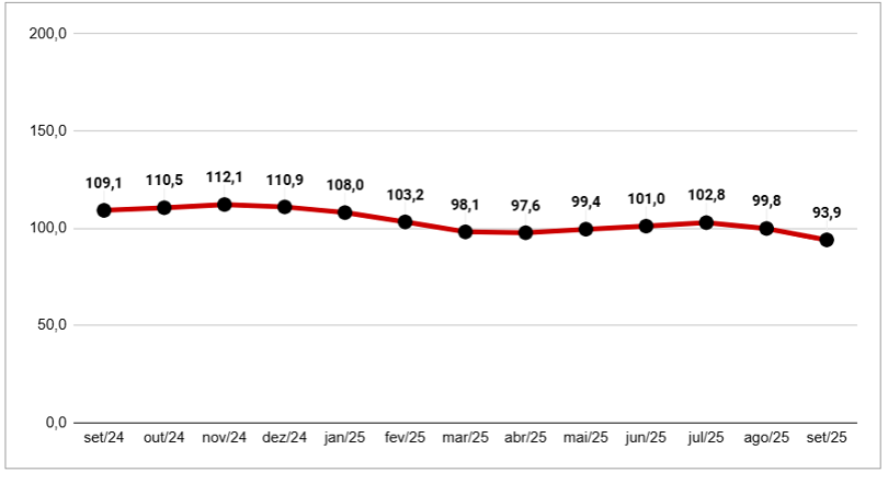 <![CDATA[O sentimento de pessimismo entre os empresários do varejo paulistano se aprofundou em setembro. O Índice de Confiança do Empresário do Comércio (ICEC), produzido pela Federação do Comércio de Bens, Serviços e Turismo do Estado de São Paulo (FecomercioSP), caiu 5,9%, ao passar de 99,8 pontos, em agosto, para 93,9 pontos, em setembro — é a segunda queda seguida atingindo a menor pontuação desde junho de 2021 [gráfico 1]. No comparativo anual, o indicador exibiu queda de 13,9%, a oitava consecutiva. [GRÁFICO 1]Índice de Confiança do Empresário do Comércio (ICEC)Série histórica — 13 mesesFonte: FecomercioSP De acordo com a FecomercioSP, o cenário é marcado por incertezas e preocupações com a desaceleração da atividade econômica. Como a Entidade já havia alertado, embora as vendas estivessem apresentando bons resultados, o dia a dia das empresas ainda é de muita dificuldade, com margens apertadas, crédito caro, empréstimos contraídos durante a pandemia que ainda estão sendo pagos, entre outros fatores que afetam a rentabilidade e a lucratividade. Os dados de negócios em recuperação judicial ou que faliram comprovam esse quadro difícil, que reflete na confiança. Os três componentes do ICEC — o Índice das Condições Atuais do Empresário do Comércio (ICAEC), o Índice de Expectativa do Empresário do Comércio (IEEC) e o Índice de Investimento do Empresário do Comércio (IIEC) — recuaram no comparativo mensal [gráfico 2]. A escala de pontuação varia de 0 (pessimismo total) a 200 pontos (otimismo total), sendo que a fronteira dos 100 pontos separa o pessimismo do otimismo. [GRÁFICO 2]Subíndices do ICEC — ICAEC, IEEC e IIECAgosto de 2024 a agosto de 2025Fonte: FecomercioSP O recuo de 6,5% do ICAEC, marcando 69,1 pontos em setembro, evidencia esse sentimento de insatisfação e de extrema dificuldade para manter as operações rotineiras, agravado pelos juros elevados e pela desaceleração e, até mesmo, pela queda nas vendas. É o menor patamar desde julho de 2021