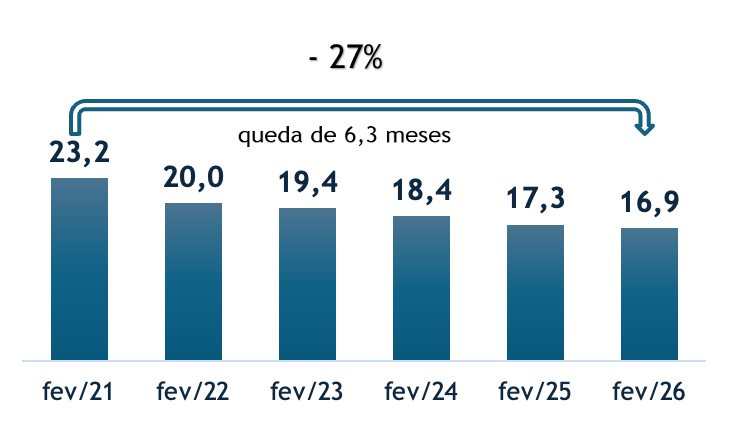 <![CDATA[A escassez de mão de obra nos Serviços tem se agravado em meio ao aquecimento do mercado de trabalho, elevando a dificuldade de retenção de profissionais. O setor abrange 57% dos empregos formais no País e responde por cerca de 70% do Produto Interno Bruto (PIB), o que amplia os impactos da falta de trabalhadores sobre a atividade econômica. Ao mesmo tempo, indicadores revelam vínculos mais curtos e aumento da rotatividade, mesmo diante do crescimento expressivo das contratações. Estudo do Conselho de Serviços da Federação do Comércio de Bens, Serviços e Turismo do Estado de São Paulo (FecomercioSP) mostra que um dos principais sinais desse quadro é a queda no Tempo Médio de Permanência no emprego (TMP). Entre fevereiro de 2021 e fevereiro de 2026, o indicador recuou 6,8 meses no Brasil (−27%) e 6,3 meses em São Paulo (−27,2%), evidenciando relações de trabalho mais breves e maior dificuldade das empresas para manter seus quadros [gráficos 1 e 2]. Gráfico 1Tempo Médio de Permanência (TMP) no emprego, em meses, em São PauloFonte: Ministério do Trabalho e Emprego/CagedElaboração: FecomercioSP Gráfico 2Tempo Médio de Permanência (TMP) no emprego, em meses, no Brasil Fonte: Ministério do Trabalho e Emprego/CagedElaboração: FecomercioSPApesar disso, o volume de admissões avançou em torno de 80% no período analisado, indicando um mercado aquecido, porém mais instável. Na prática, as empresas estão contratando mais, mas têm mais dificuldades para reter trabalhadores, o que eleva custos operacionais, exige investimentos contínuos em treinamento e afeta a produtividade. Segundo o presidente do Conselho de Serviços da FecomercioSP, Marcelo Braga, o momento exige uma mudança de foco por parte dos empresários. “Hoje, mais do que contratar, o empresário precisa pensar em como reter. O mercado está mais dinâmico e o profissional circula mais”, afirma. Mais mobilidade e mudança no perfil da força laboralDe acordo com o estudo, no Brasil, a redução no tempo de permanência nas empresas foi generalizada entre diferentes faixas et&a