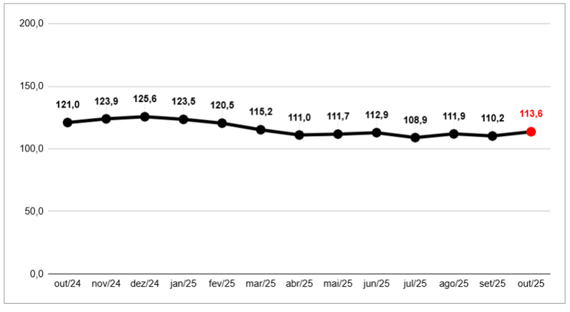 <![CDATA[A desaceleração da economia e as proximidades da Black Friday e do Natal incentivaram o consumo das famílias paulistas em outubro. De acordo, com Federação do Comércio de Bens, Serviços e Turismo do Estado de São Paulo (FecomercioSP), o Índice de Confiança do Consumidor (ICC), que reflete percepções sobre o ambiente econômico e as expectativas de longo prazo, avançou 3,1% em relação a setembro, registrando 113,6 pontos [gráfico 1]. A Intenção de Consumo das Famílias (ICF), que mede o humor e a propensão imediata ao consumo, sinalizou leve melhoria, com alta de 1,1% em outubro, alcançando 107 pontos [gráfico 2]. [GRÁFICO 1]Índice de Confiança do Consumidor (ICC)Série histórica — 13 mesesFonte: FecomercioSP [GRÁFICO 2]Intenção de Consumo das Famílias (ICF)Série Histórica — 13 mesesFonte: FecomercioSPSegundo a FecomercioSP, os resultados dos índices indicam que o atual cenário das famílias brasileiras é de otimismo pontual, impulsionado pela sazonalidade das datas comemorativas e a injeção de recursos do décimo terceiro salário, que reforçam o consumo de bens de menor valor e o pagamento de dívidas. No entanto, o comportamento ainda é marcado por cautela estrutural, em razão dos juros elevados, da renda mais contida e do crédito restrito.Momento atual melhora, mas perspectivas econômicas ainda preocupamApesar do leve avanço do Índice de Confiança do Consumidor (ICC) em outubro, o indicador permanece abaixo do nível registrado no mesmo período do ano passado, com queda de 6,1% — a 15ª retração interanual consecutiva. O resultado reflete a percepção de que a recuperação econômica segue frágil e desigual entre as diferentes faixas de renda.Os componentes do ICC mostram avanço na avaliação dos lares sobre o momento atual: o Índice das Condições Econômicas Atuais (ICEA) apresentou alta de 3,5%, chegando a 109,5 pontos, enquanto o Índice de Expectativas do Consumidor (IEC) cresceu 2,9%, indicando um otimismo moderado em relação aos próximos meses. Ainda assim, na comparação anual, os dois indicadores registram retrações de 3,5% e 7,6%, respectivamente, evidenciando um quadro de cautela e endividamento elevado [gráfico 3]. [GRÁFICO 3]Subíndices do Índice de Confiança do Consumidor (ICC)Série histórica — 13 mesesFonte: FecomercioSPEsse movimento é motivado pela desaceleração da inflação, pela redução do desemprego e pela proximidade de datas sazonais, além da injeção do décimo terceiro salário, que contribui para aumentar a liqu