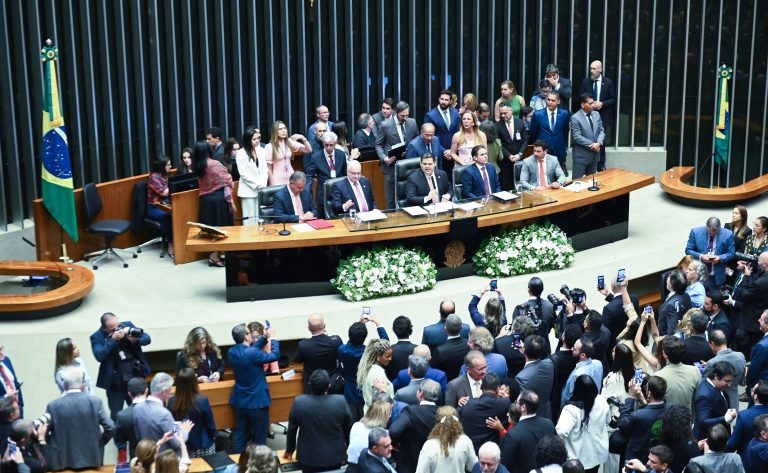Também compõem a Mesa dos trabalhos e discursarão o presidente da Câmara dos Deputados, Hugo Motta (Republicanos-PB); e o presidente do Supremo Tribunal Federal, Edson Fachin.